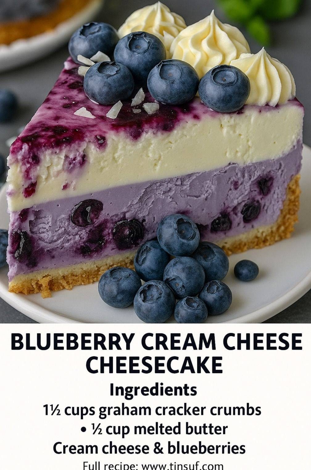 A creamy, dreamy cheesecake with a buttery graham cracker crust and a sweet-tart blueberry layer. Perfect for any occasion!