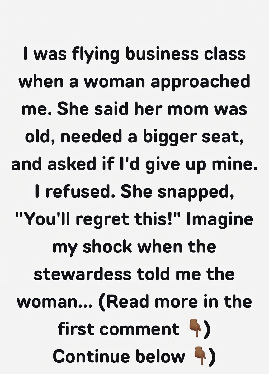 I was caught off guard but politely said no, like, I paid for this seat, I’m not about to squeeze into economy for 12 hours. She immediately got all huffy and said, “You’ll regret this.” Which…