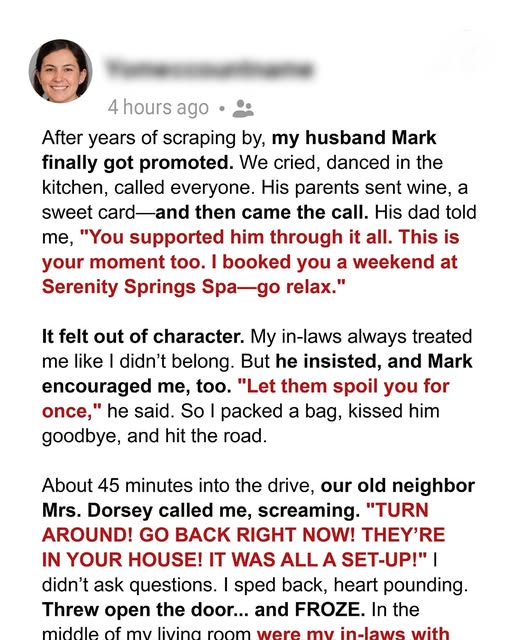 It was unlike him. In five years of marriage, Mark’s parents had treated me like a guest in a house they never intended me to own. Polite. Distant. Measuring. But Mark squeezed my shoulders and said, “Let them do something nice. Just this once.”
